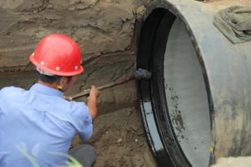 一截管道安裝完畢,王俊鉆進(jìn)了管道中,沿著新鋪設(shè)的這截6米長的管道,一邊爬一邊觀察,檢查管道接口處的皮圈是否有縫隙,有沒有受擠壓而外露。見皮圈處平整無縫,王俊才放心地爬了出來。盡管當(dāng)天氣溫不高,但管道中密不透風(fēng),讓人喘不過氣,一趟爬下來,王俊的腦門上布了一層細(xì)細(xì)的汗珠。