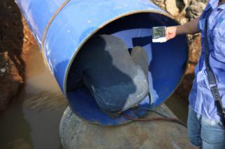 深土溝中作業(yè) 爬進(jìn)管道安檢