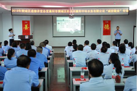 7月25日下午,根據(jù)襄陽(yáng)市委宣傳部、市文明辦的要求,襄陽(yáng)中環(huán)水務(wù)有限公司與樊城稅務(wù)局聯(lián)合舉辦了一期主題為“誠(chéng)信敬業(yè)”的道德講堂活動(dòng)。襄陽(yáng)中環(huán)公司紀(jì)委書(shū)記、副總經(jīng)理焦為民;財(cái)務(wù)總監(jiān)王平;工會(huì)主席徐玲,以及公司各基層單位、機(jī)關(guān)部室代表參加了活動(dòng)。