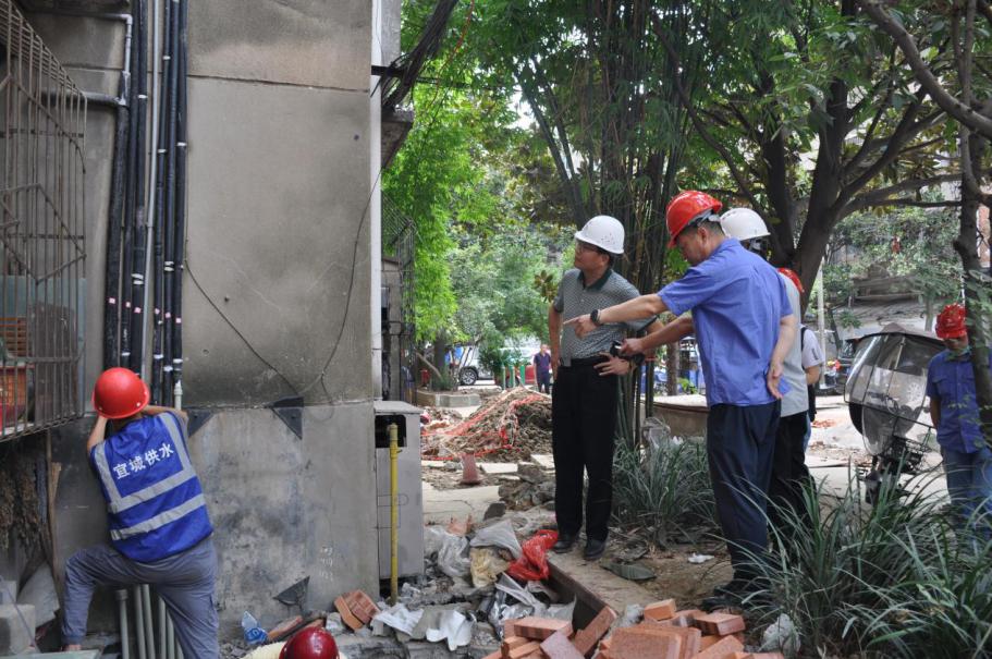 集團(tuán)公司領(lǐng)導(dǎo)一行先后到水廠泵房、老舊小區(qū)改造施工現(xiàn)場(chǎng)、搶修工地,為堅(jiān)守在高溫一線的職工送去防暑降溫用品?,F(xiàn)場(chǎng)查看了水廠泵房運(yùn)行情況,詢問(wèn)了夏季用水高峰期保障供水安全的具體措施;在經(jīng)貿(mào)小區(qū)家屬樓戶表改造及消火栓安裝工程現(xiàn)場(chǎng),聽(tīng)取了現(xiàn)場(chǎng)帶班人員對(duì)工程計(jì)劃、施工進(jìn)度等情況匯報(bào),并強(qiáng)調(diào)黨員干部要結(jié)合下基層察民情解民憂暖民心實(shí)踐活動(dòng),深入一線,了解老百姓的所求所需,更好地服務(wù)于人民群眾。